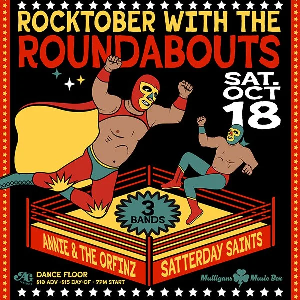 AG Presents and Mulligans On The Blue are excited to bring you Rocktober with the Roundabouts!! The Roundabouts have invited two other bands to join them. Annie and the Orfinz, and The Satterday Saints. 3 bands, 1 show. Costumes are highly encouraged, letʻs hit the dance floor to some of your favorite 80’s and 90’s songs.